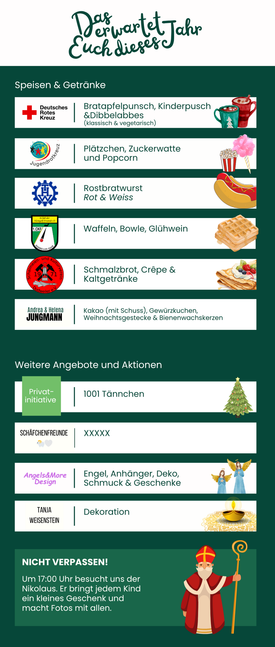 Taucht ein in den Zauber der Weihnachtszeit bei unserem Winterzauber. Am 22. November von 14:00 bis 21:00 Uhr verwandelt sich unser idyllischer Ort in eine festliche Winterwunderwelt, die Groß und Klein in ihren Bann ziehen wird. Wir laden herzlich ein, diesen besonderen Tag mit uns zu verbringen.